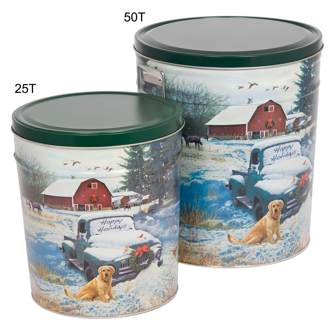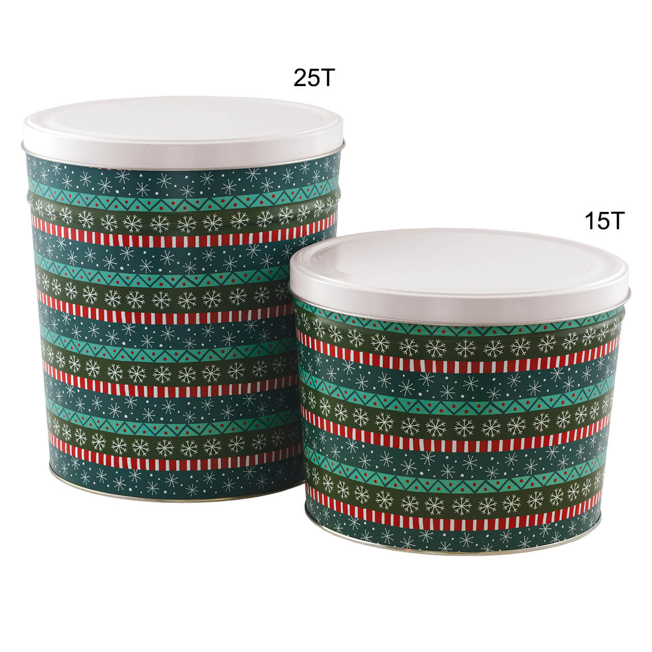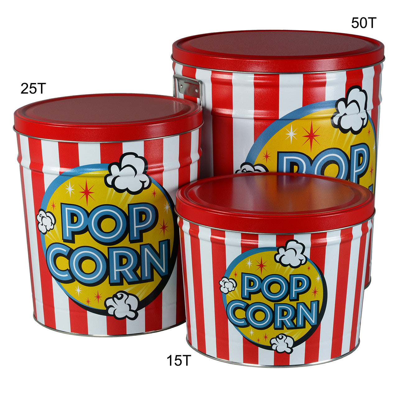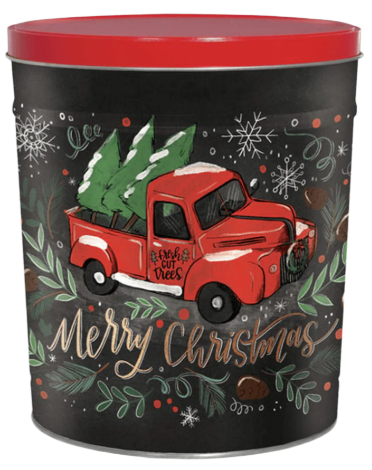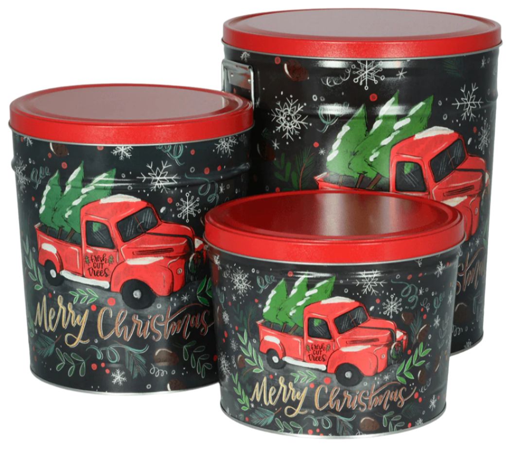 Our three and a half gallon tin makes for a meaningful gift, hostess treat, or party snack. Filled with freshly made gourmet popcorn, these tins offer a variety of options for filling, including half & half or three-way split flavors.