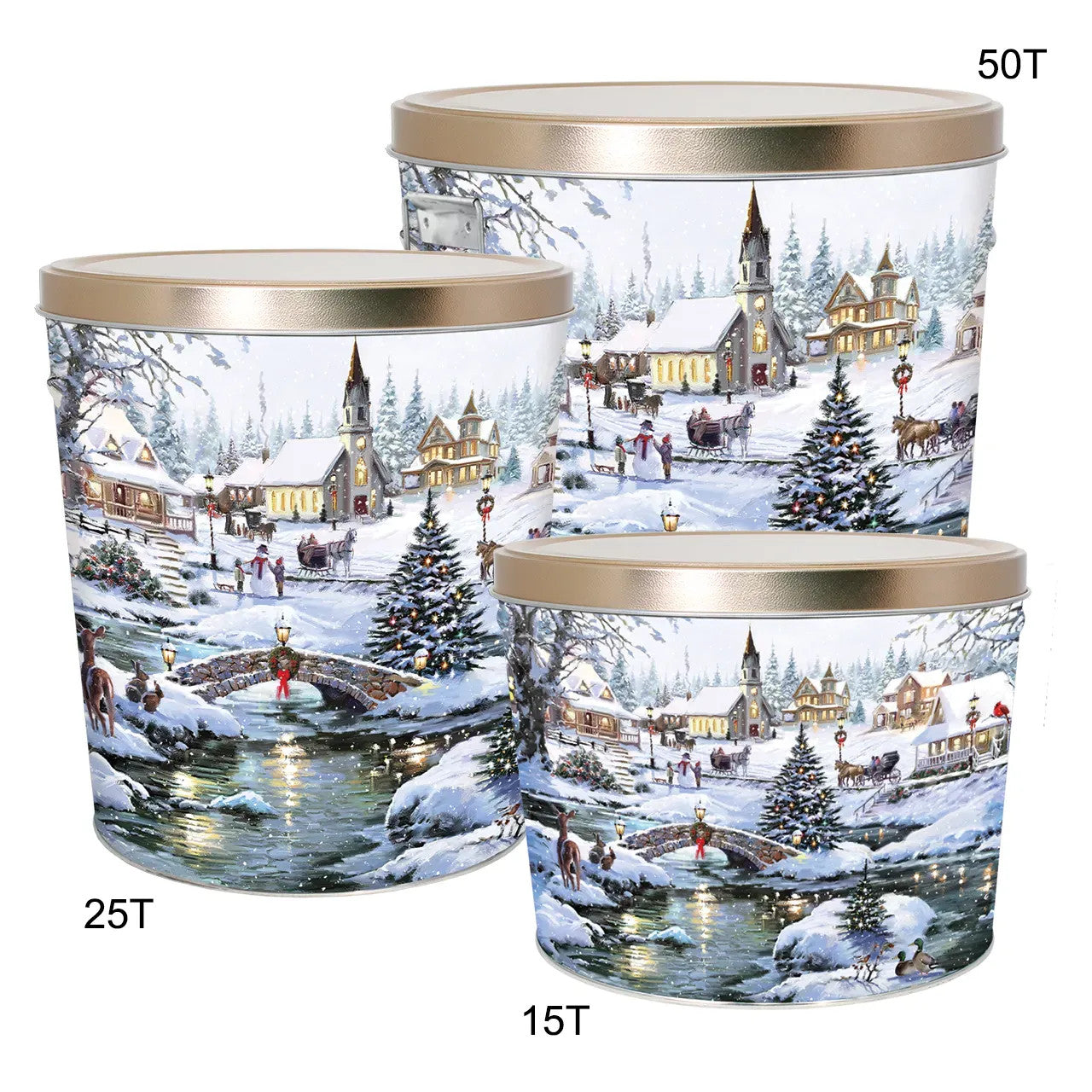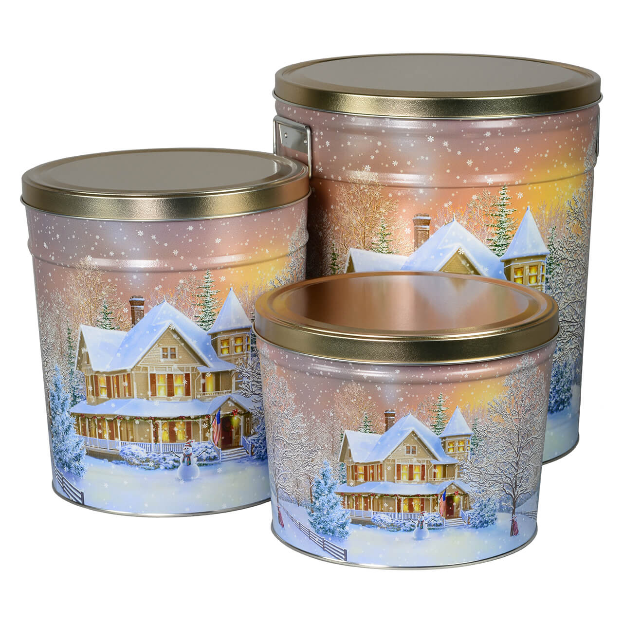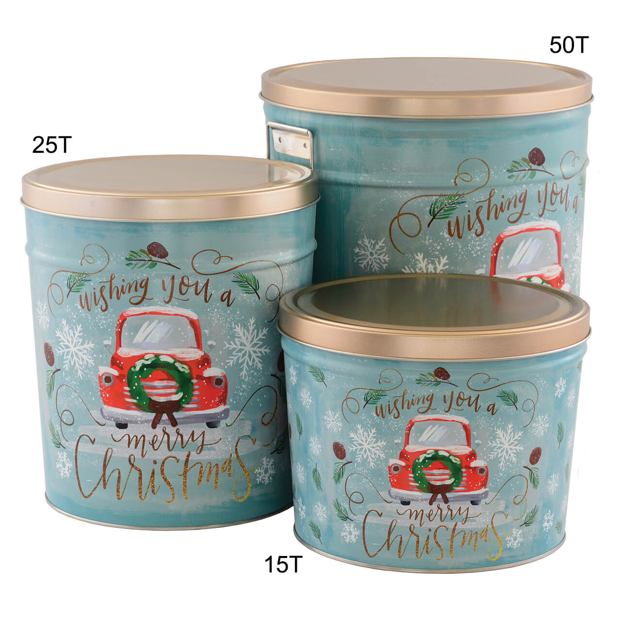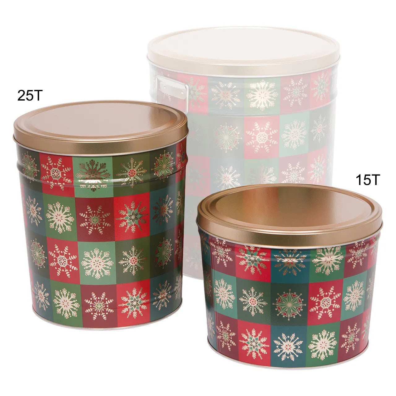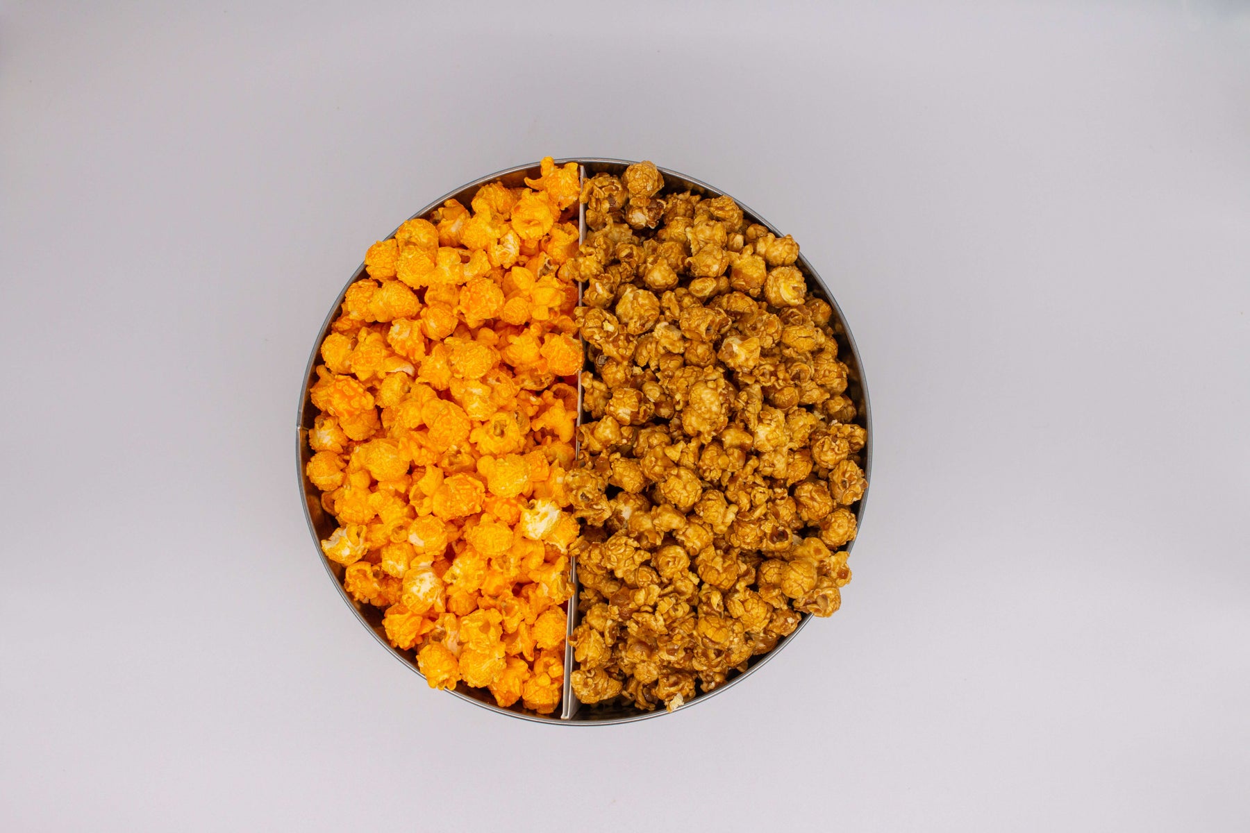 Our three and a half gallon tin makes for a meaningful gift, hostess treat, or party snack. Filled with freshly made gourmet popcorn, these tins offer a variety of options for filling, including half & half or three-way split flavors.